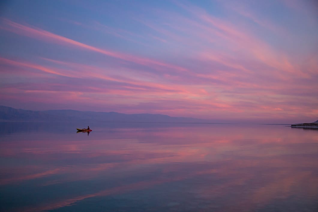 תתכוננו להתאהב באטרקציה הכי מיוחדת בים המלח. דמיינו את עצמכם על קיאק בלב ים שליו ויפה, רק אתם, בן /בת זוגכם והעננים הנצבעים בגווני ורוד שבכל רגע משנים את צורתם ומשתקפים על המים במראה הנראה כציור.